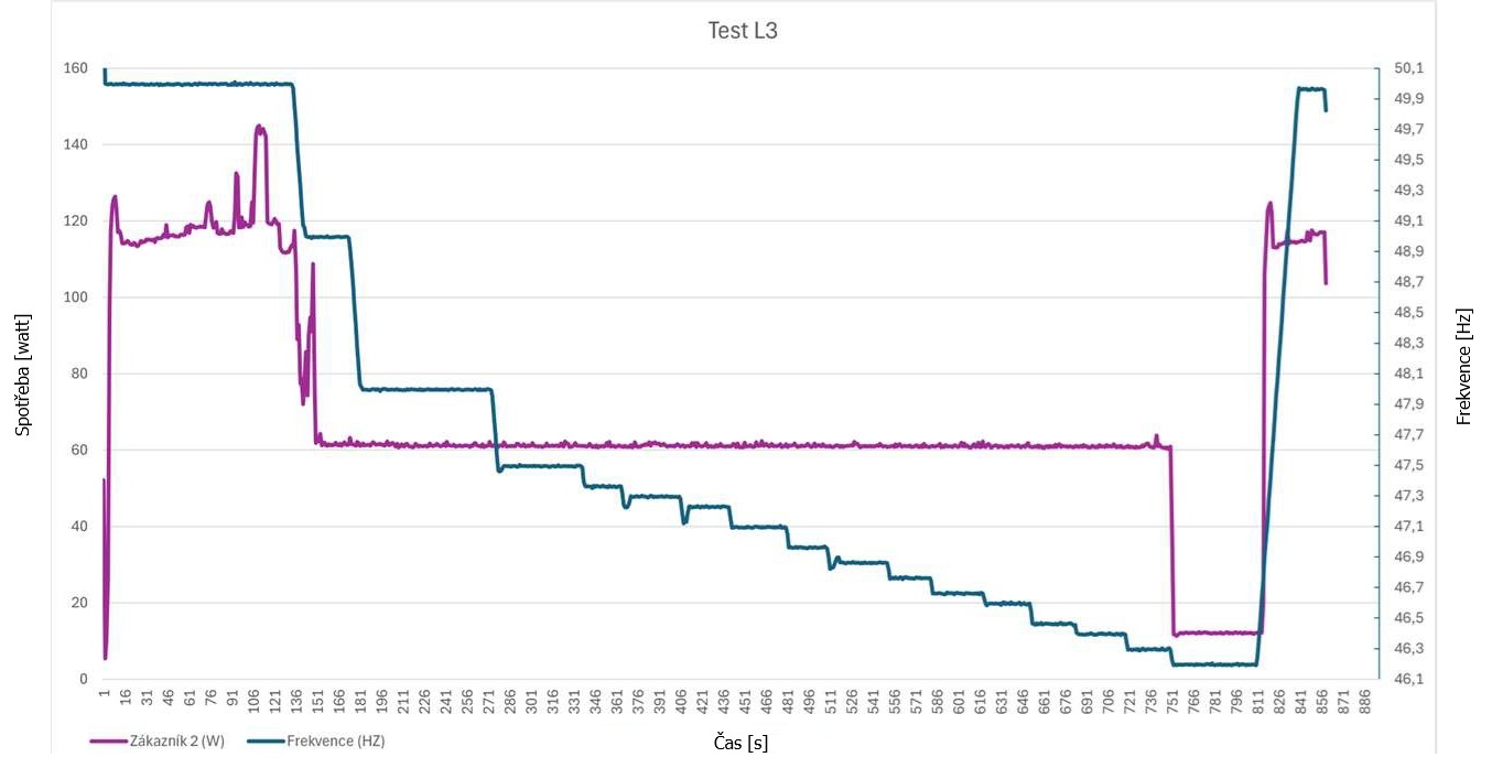 Při výpadku byl naměřený pokles vstupní frekvence na hodnotu 46,2Hz.